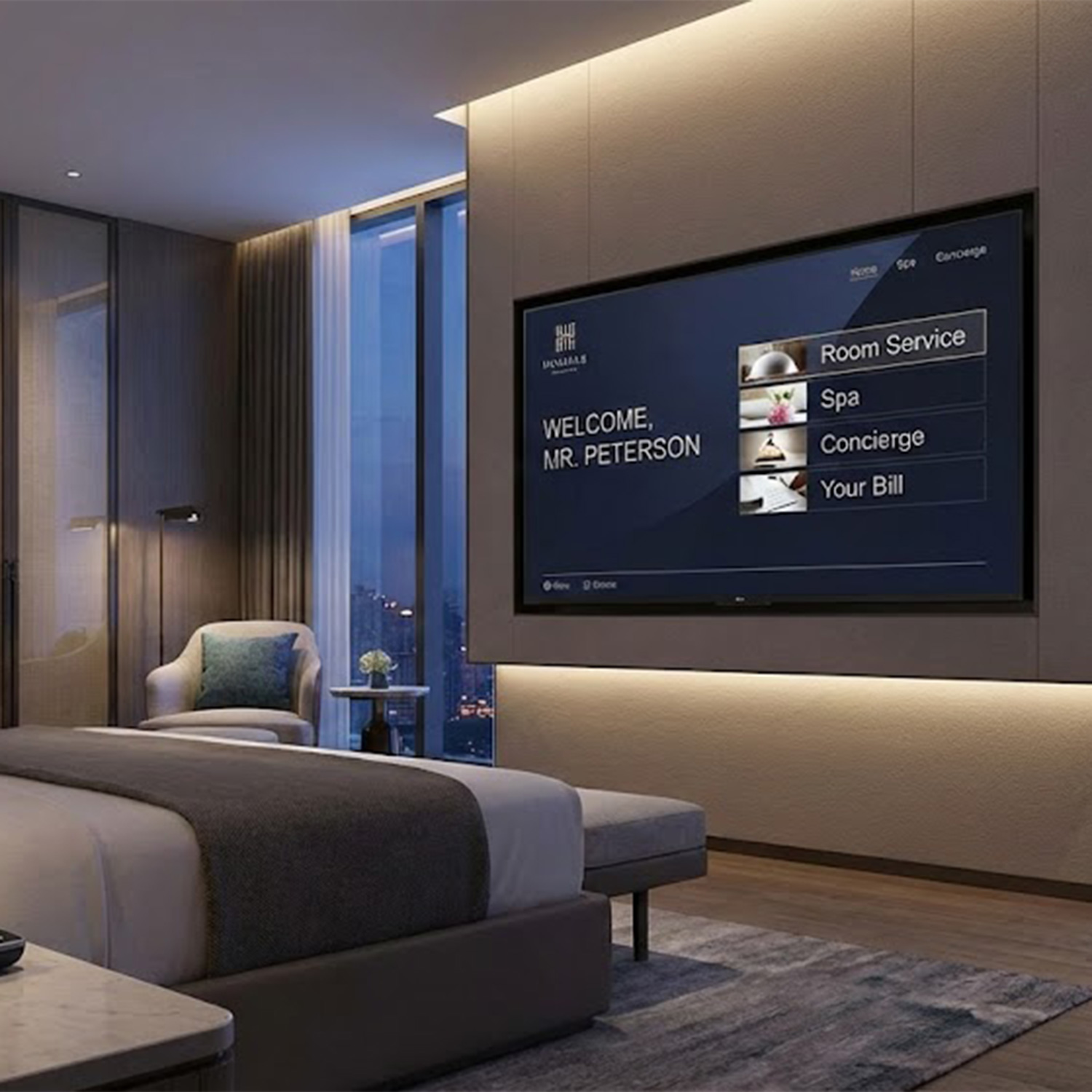 Hotelski TV sustav postao je vrlo važan dio hotelske tehnologije. Sa vrhunskom kvalitetom slike u visokoj razlučivosti (HD), nova generacija LED televizora nudi posebno iskustvo gledanja.
